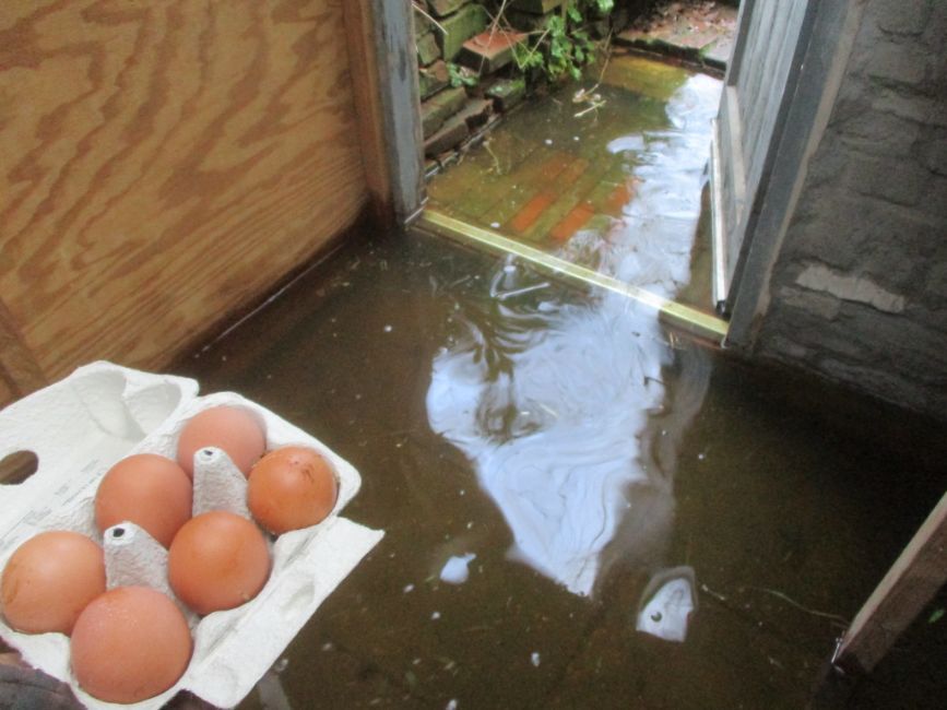 We hebben het kippenhok alleen een stuk dieper in de grond gebouwd, om het hok (het dak dan) niet zo hoog te laten worden en zodat de kippen in de zomer wat koeler zitten en in de winter wat warmer. En dat gaat bijna altijd gewoon goed. Niet in 2016, en dit jaar dus ook niet. Ach ja, de kippen wonen nu op een soort verdieping in dat hok en vermaken zich prima, zoals je aan de 6 eieren kunt zien ;)
