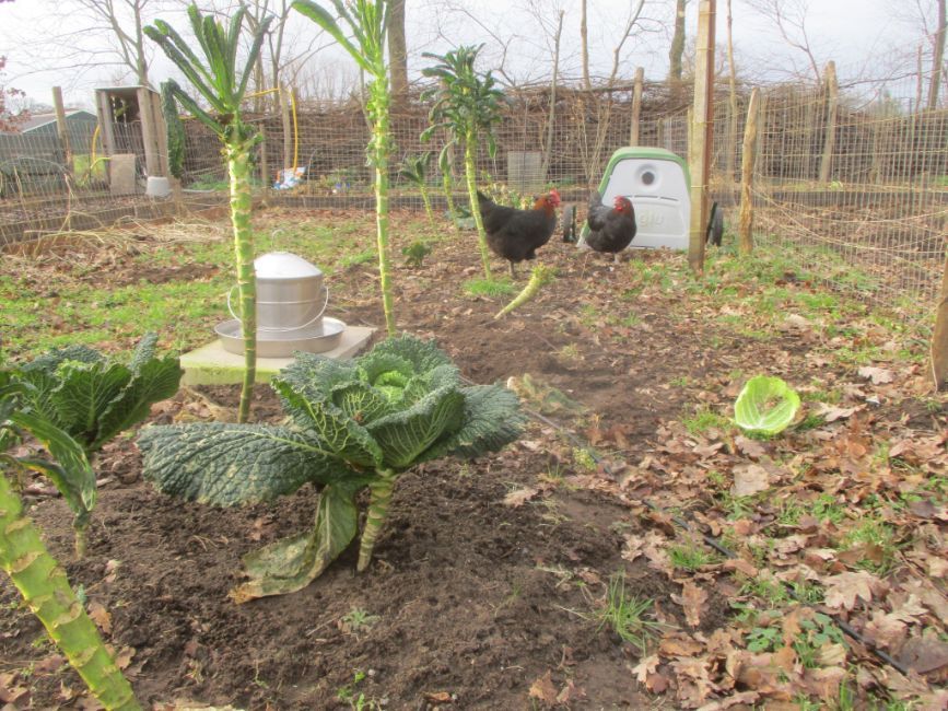Hier blijven de kippen gewoon door leggen. 3-4 eitjes per dag van 6 hennen.