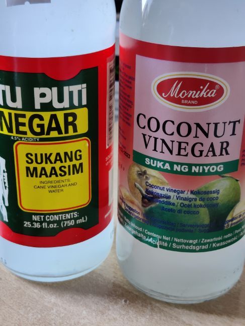 In de toko kocht ik azijn van kokossap en van rietsuiker voor Filipijnse peperazijn, waar ik handenvol pepertjes in kan gooien. Heb ook verse laos daarvoor gekocht en een gember die er anders uitziet dan de Chinese, veel fijner.