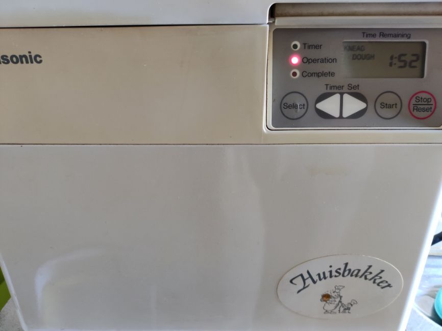 Een bejaarde Panasonic broodbakmachine uit de kringloopwinkel, waar ik heenging om dingen weg te brengen 🤔. Schijnen goede machines te zijn.