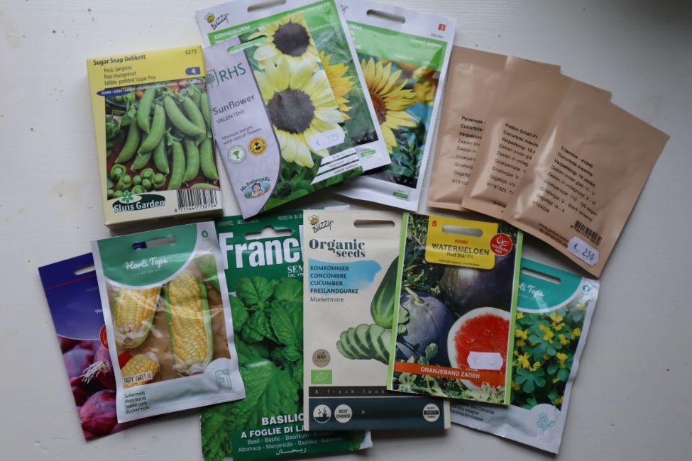 Zaadjes van Piment d'espelette, thaise mini-aubergine en oesterblad. Iets om naar uit te kijken volgend jaar. Gekocht via Franse eBay.