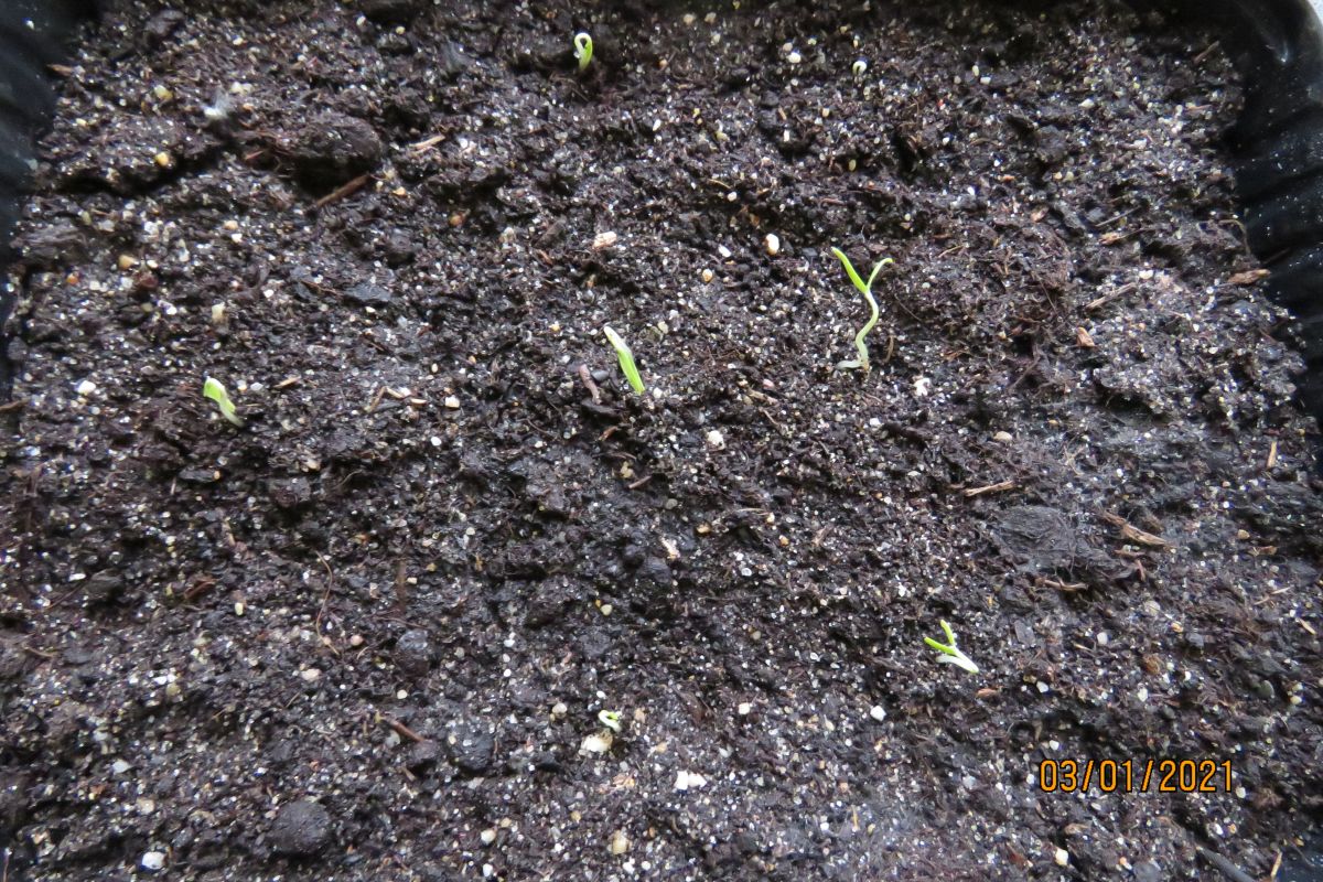 Geplaatst: 3 januari 20215 j Na het verwijderen van de afdekfolie vanmiddag staan er bij mij 7 van de 12 op 29 december als test gezaaide tomatenplantjes boven de grond. Niks bijzonders eigenlijk, zoiets gebeurt wel vaker . Het bijzondere van deze plantjes is echter dat ze bewijzen dat tomatenzaden (erg) lang kiemkrachtig kunnen blijven. De zaden zijn van het enige ras dat mijn vader teelde. Dat deed hij al zolang ik mij dat kan herinneren. Naam ras onbekend. De laatste zaden schoonde hij in 1995, het jaar dat hij stierf. Ik ben zijn tomaten sindsdien ook gaan telen tot er in 2009 enkele planten verschijnselen van verbastering vertoonden. Zijn laatst geschoonde zaden waren er nog. Nooit weggegooid uit wat sentimentele overwegingen denk ik. Hoewel 14 jaar oud bleken er nog genoeg te kiemen zodat ik in 2009 weer een stuk 'terug in de tijd' was en planten had die genetisch gezien weer op orde waren. Sindsdien gooi ik eigengeteelde overjarige tomatenzaden niet meer weg. Afgelopen jaar stond er weer een 'verdachte' plant en dat was de reden om weer eens oude zaden op kiemkracht te testen. De oudste zaden uit 2009 (de eerste generatie dus afkomstig van de zaden uit 1995 ) eerst. Hoewel bijna 12 jaar oud blijken ze nog behoorlijk kiemkrachtig te zijn zodat tests met jongere zaden niet meer nodig zijn. De zaden werden in een bakje met een mix van fijngemaakte potgrond en brekerzand gelegd. Het bakje staat op mijn als warmtematje dienend modem. De grondtemperatuur varieert van 21.5 °C 's nachts tot ruim 25 °C overdag. En toen ? De plantjes hebben hun werk gedaan. Ze bewezen dat het uit 2009 afkomstige zaad bruikbaar is. Ik zou ze moeten weggooien want normaal zaai ik dit ras pas eind maart/begin april. Maar af en toe mag je best wat irrationeels doen dus de mooiste 2 ga ik door houden. Voorlopig staan ze allemaal netjes geparkeerd onder een groeilamp van Ikea. -- Planten kunnen niet voelen. Je kunt planten wél aanvoelen. --