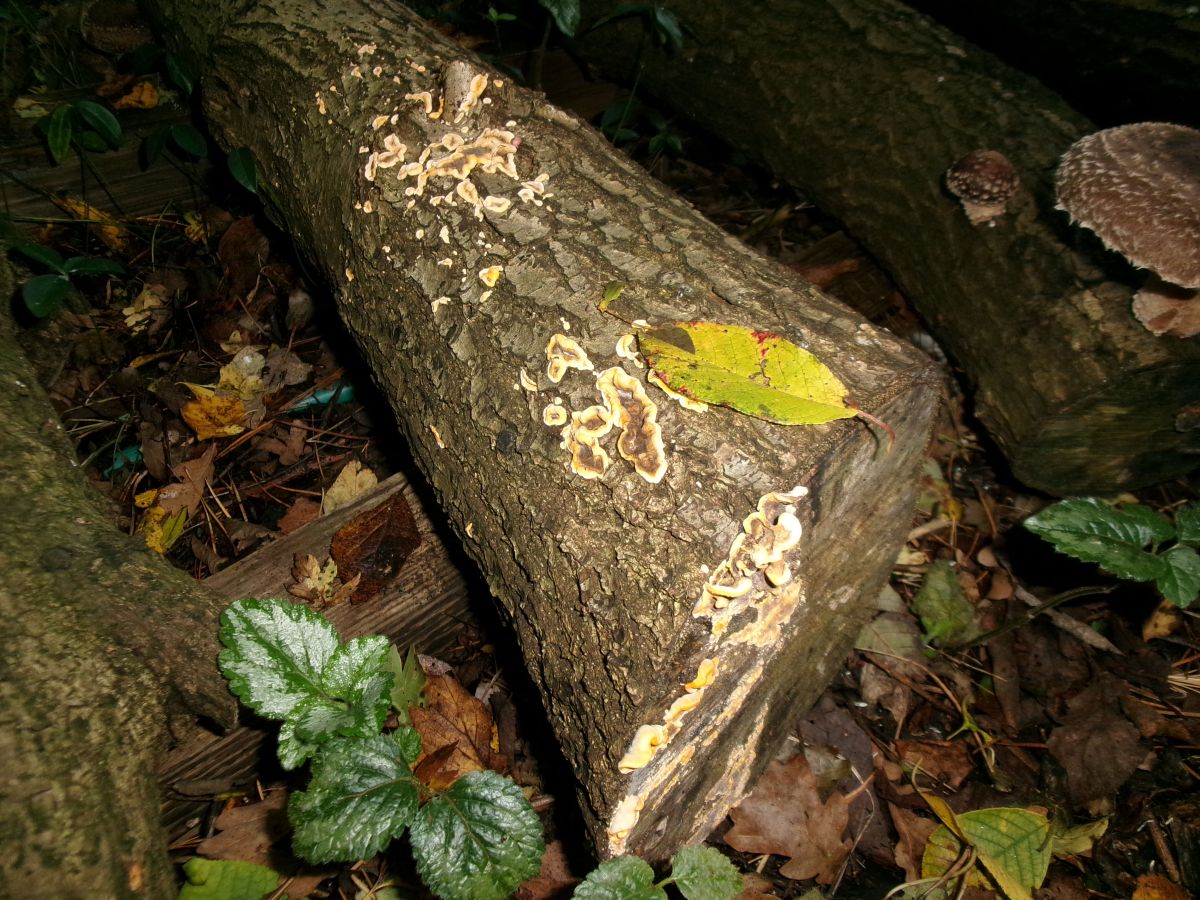 O lekker zeg verse shii takes. Ja wij hebben dat ook wel gehad, een beetje elfen bank achtige groei op dezelfde stam. Die stam zal misschien ietwat minder opbrengst kunnen geven aan t eind omdat de andere zwam ook hout “opeet”. We hebben het ook wel eens wat weg gekrabd maar ik geloof niet dat dat iets uitmaakt.