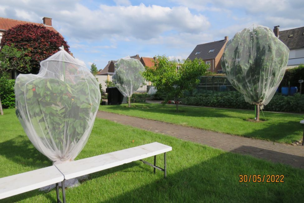 Geplaatst: 2 juni 20223 j Ik heb dit jaar voor het eerst een blauw net over de aardbeien en duivenverschrikkers van ouwe cd's. En een heleboel vitrage bij Ikea gekocht, is goedkoper dan het officiële insektengaas en houdt de vlinders ook van mijn kolen. Verschrikkelijk lelijk allemaal, maar ik wil geen gif gebruiken. Onze volkstuinen staan midden in een bosje, dus er zijn ook veel vogels en een aantal helpt echt bij het binnen de perken houden van plaaginsekten. Je kunt geen schoffel in de grond zetten of er staat vlakbij al een roodborstje klaar 🙂 Maar duiven vinden het er ook ideaal, veel plek voor hun gammele nesten ęn de supermarkt vlakbij. Mulch! Moeder natuur houdt niet van kale grond.