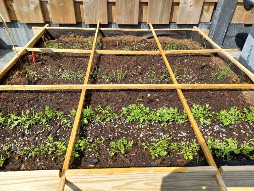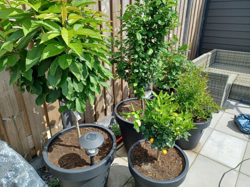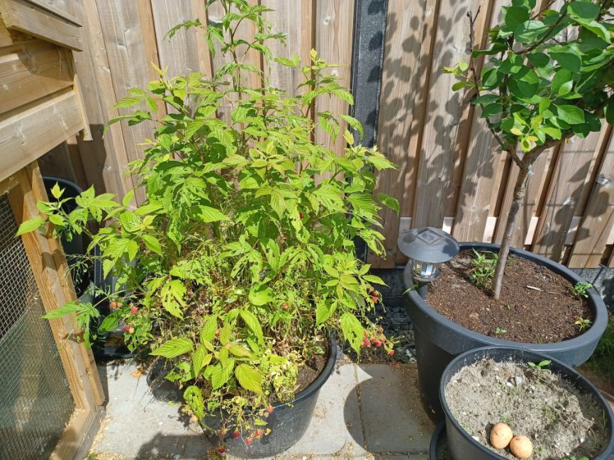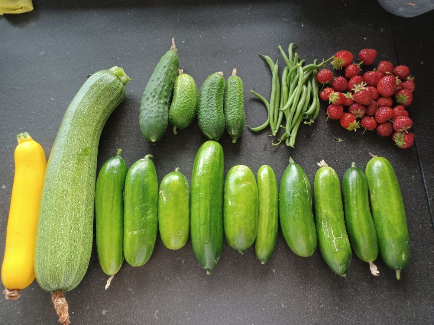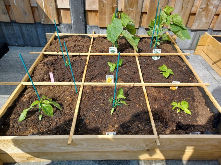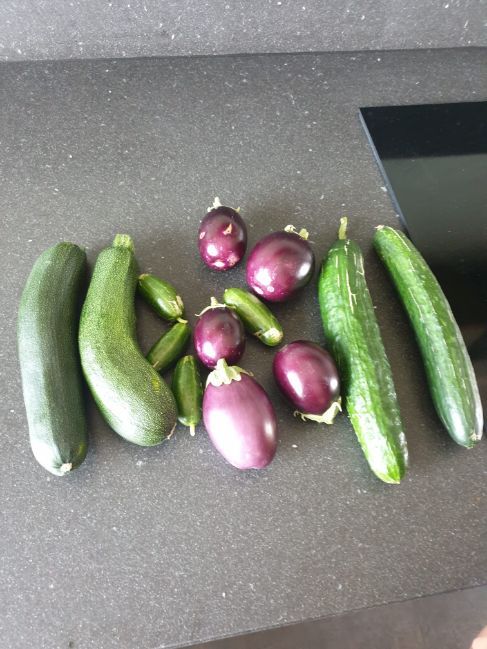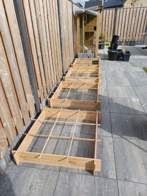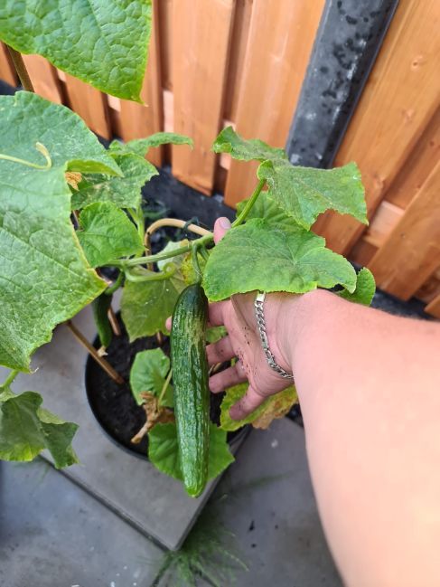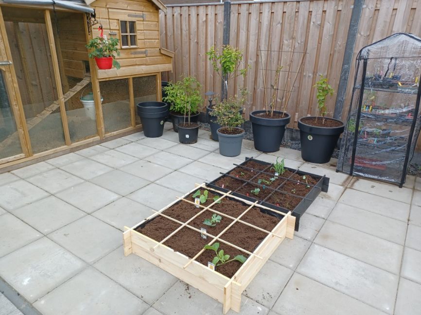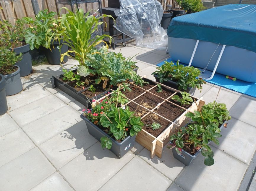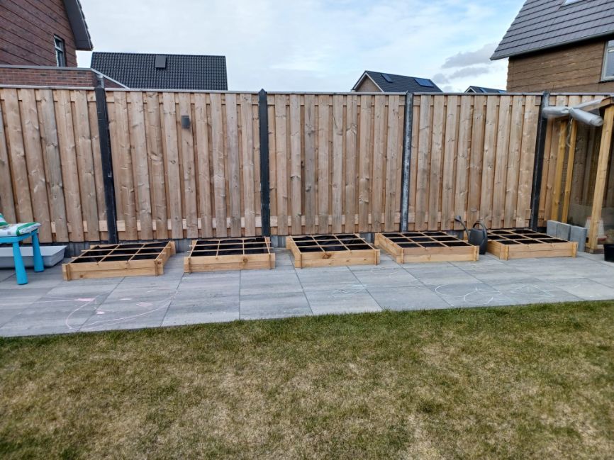 Geplaatst: 25 juni 20223 j Hoi! Ik ben Ruben, 33 en woon samen met mijn vrouw en twee kinderen (2 en 5) in Heerhugowaard. Twee jaar terug in Heerhugowaard komen wonen waar we een vrij grote achtertuin hebben (12 bij 11 meter) Vorig jaar begonnen met het kweken van wat groentes in potten. Dat ging eigenlijk wel heel erg goed. Heel veel komkommers, courgettes, aubergines en rode/gele pepers vanaf kunnen halen. Gezien ik aardig wat Surinaamse collega`s heb namen de pepers gretig aftrek gezien ze ook zeer pittig waren. Dus dat moest een stapje groter. Eerst de familie uitgebreid met kippen. We hebben er inmiddels 9 die af en toe door de tuin scharrelen. Dit jaar moest het wat groter en kwamen we toevallig vierkante meter bakken tegen: We begonnen met 5 vierkante meter bakken maar dat zijn er inmiddels 8 geworden. Het e.e.a eerst opgekweekt binnen vanaf zaad. Daarna naar buiten in een kweekkasje of door de grond in. Inmiddels ziet er er nu zo uit: We merken dat we iets te enthousiast zijn geweest met de hoeveelheden of de verdeling. Staat een beetje vol. Maar we hebben al genoeg kunnen oogsten: De eerste augurken zijn ingemaakt en al heerlijke courgettesoep en courgettepasta kunnen maken. Achter in de tuin staan nog wat fruitbomen De kinderen vinden het heerlijk om zo even wat uit de tuin te plukken of om samen te kijken of er al wat klaar is wat ze kunnen eten. Wel veel last van rupsen van het koolwitje. Maarja ook die moeten te eten hebben dus laten we lekker gaan. Volgend jaar willen we toch een aantal stenen eruit gaan halen en op de plekken waar nu de vierkante meter tuintjes staan gewoon een moestuintje van te maken. Dus van klein steeds een stukje groter.