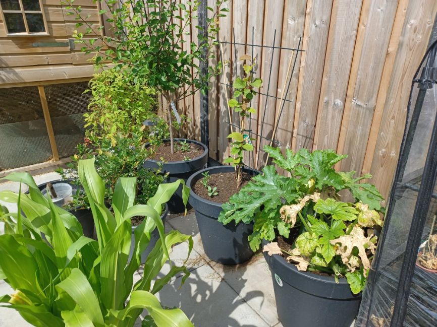 Geplaatst: 25 juni 20223 j Leuk om de transitie van luchtplaats naar (moes)tuin te zien. 👍 Je hebt nu met alle tegels wel het voordeel dat een betegelde tuin zo 10 graden warmer kan zijn dan een tuin met grond en veel planten. Zeker omdat je veel warmte minnende planten hebt. Maar planten in de grond hebben minder aandacht nodig, dat scheelt vaak veel gieten etc. Ook zit er onder het zand een prima teeltgrond in H.H.W. weet ik uit ervaring. Ben benieuwd hoe het verder gaat, je behaalt al mooie oogsten. De moestuin van Patrijs