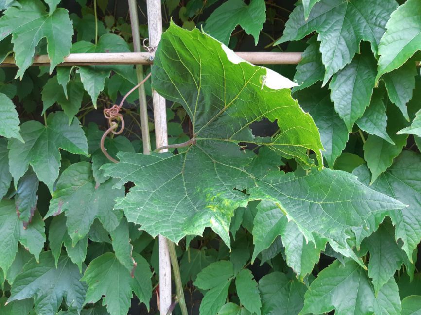 Geplaatst: 18 juli 20223 j Hiervoor heeft iemand een vraag gesteld over peperplant met gaten in het blad. Aangezien in mijn achtertuin zo'n beetje iedere plant aangevreten is, open ik maar een nieuw draadje. Slakken zijn uitgesloten, ik strooi slakkenkorrels, dat wat een keus: de slakken of ik. Ik zie geen beestjes, rupsjes, al heb ik wel leliehaantjes betrapt op de lelies en ze weggehaald, maar deze niet gezien op andere planten. Druif: en De oudere wilde wingerd heeft er bijna geen last van. Jonge Chinese variant van wilde wingerd: O.I. kers: Aardbei: Stokbonen: Ook de kamperfoelie en nog meer planten hebben het, er zijn maar weinig planten die het niet hebben: tomaten en komkommers. Ik zou graag een oplossing vinden.