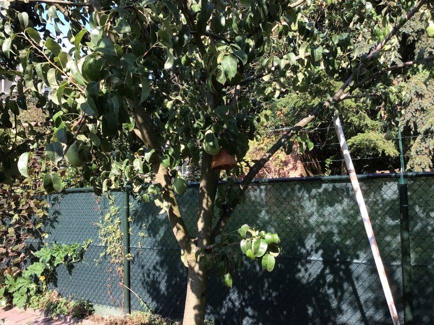 Geplaatst: 16 augustus 20223 j Auteur @marcelru. Het is maar één boom, en die blijft staan. Er is wel enig snoeiwerk nodig. De vorige huurder heeft er een paar weken geleden steunen onder gezet ,omdat de takken doorhangen onder de vruchten. Ik wil graag dat de boom korter op de stam draagt en dus geen steun nodig heeft. De foto’s zijn niet erg duidelijk. Daarom heb ik met rood de stam en takken enigszins gemarkeerd. De tak die nu ondersteund wordt, wilde ik in ieder geval stevig inkorten. Verder sta ik open voor advies. Links staat een appelboom(pje), hartstikke vol appels. Vorig jaar zagen ze er vreselijk uit, met vlekken en ruwe schil. Heerlijke compôte van gemaakt. Staan nu ook steunen onder. Hiervoor geldt hetzelfde als voor de perenboom. Zodanig snoeien dat steunen niet nodig is.