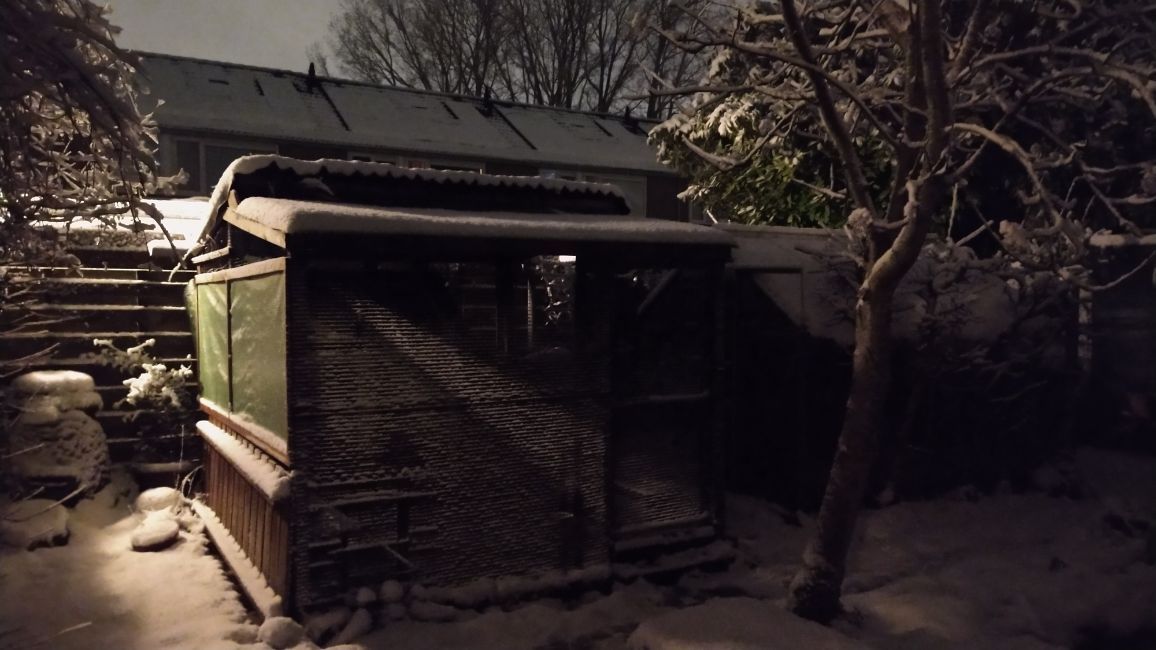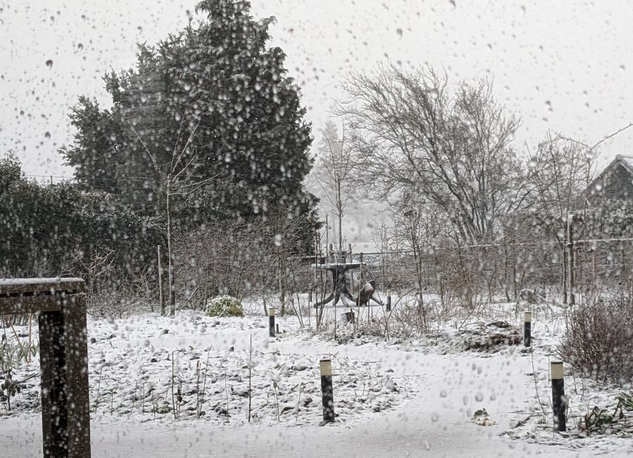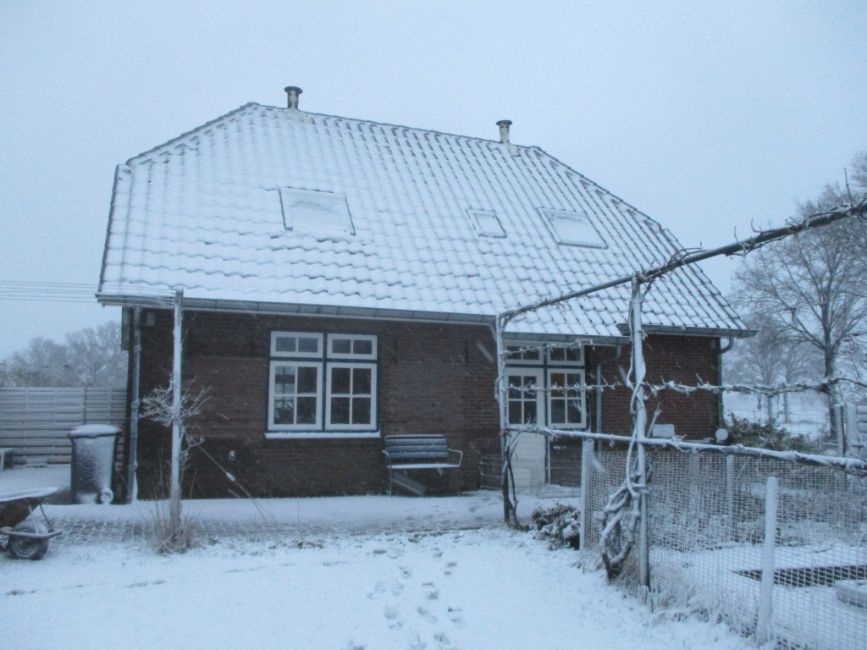 Vandaag ook hier al de hele dag natte sneeuw. De laatste uren begint het te blijven liggen, erg mooi. Helaas staat er hier ook een hoop wind, wat het extra koud maakt.