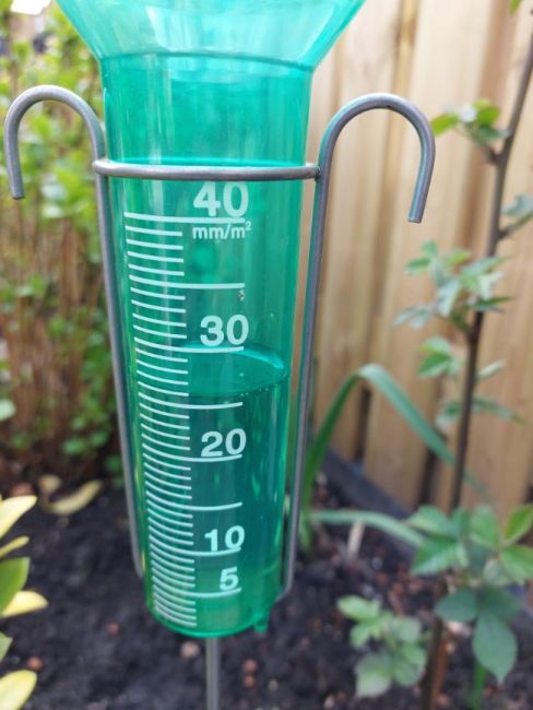 Dat was een flinke plens, afgelopen nacht en ochtend. De pluviometer geeft 23,5 mm aan!