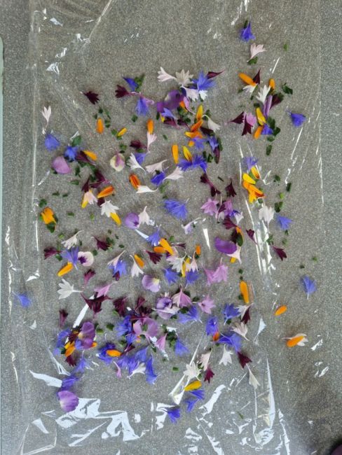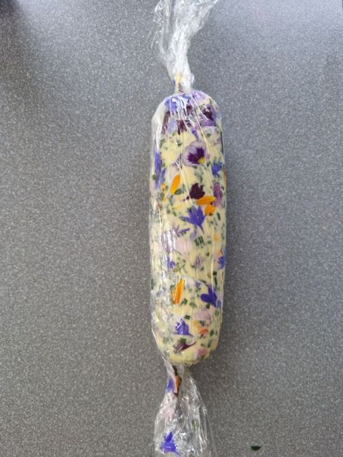 Geplaatst: 17 juni 20232 j Zojuist nog een rolletje boter gemaakt, dat gaat vast wel gebruikt worden van het weekend. Dit keer naast de bloemen, ook bieslook, platte peterselie en een theelepeltje zeezout toegevoegd aan 250gram ongezouten roomboter. Omdat het oog ook wat wil, hou ik altijd nog wat bloemblaadjes en kruiden apart, die leg ik dan op het folie voordat ik de boter in rol, dan zitten er altijd ook wat blaadjes aan de buitenkant