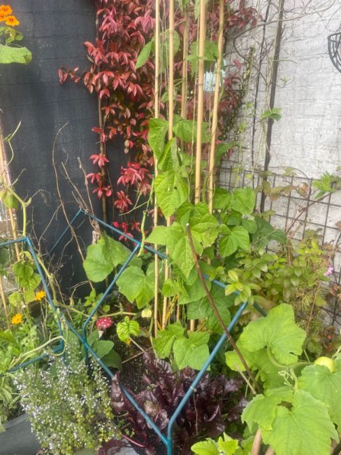 Geplaatst: 6 oktober 20241 j Vandaag mijn 4 bakken op mijn dakterras ook daar de kappen erop. Dat was meer werk vanwege alles wat te hoog is. De bonen staken voorzichtig bij de snijbonen weggehaald en de paar planten waar nog steeds bloemetjes en kleine snijboontjes aan zitten in het klimnet vast gemaakt. Zo kunnen de kappen er voorlangs. Voor de pompoen paar buizen los gemaakt zodat de steel van de pompoen eroverheen valt .. zolang het nog gaat laat ik de plant gaan want die lijkt het nu pas goed te gaan doen met 3 pompoenen in wording ….we gaan het zien 🤞🤞🤞 morgen alles beter verankeren met touw met baksteen erover.