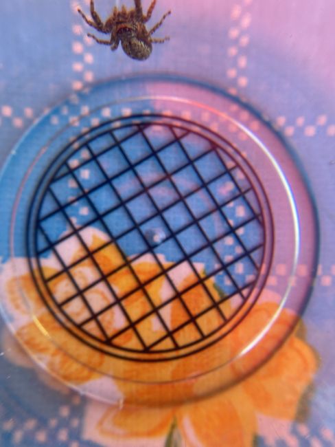 Wij hebben insectenboekjes en een determineerpotje gekocht. Van vogels weten we behoorlijk wat. Ook met bijen, hommels en vlinders komen een heel end. Nu begonnen met klein insectenspul. Eerste slachtoffer: wij denken de boswolfspin.