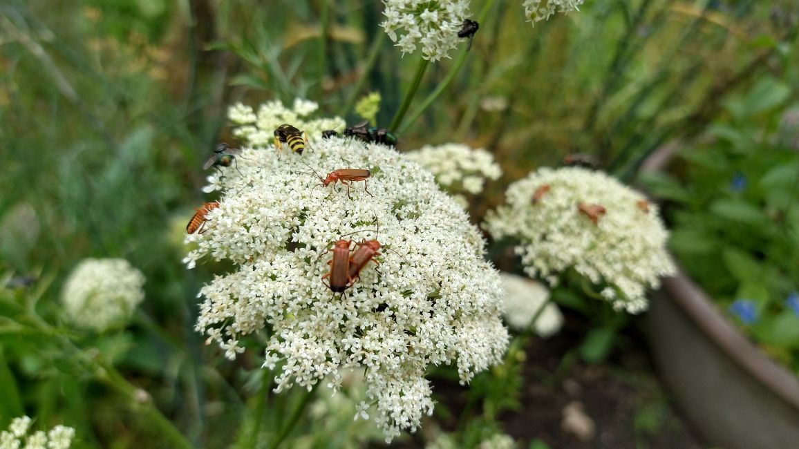 Geplaatst: 29 juli 20232 j Gezelligheid kent geen tijd. Iedereen op de bloeiende wortel. Weekschildkevers, een wespje en diverse vliegen. Mulch! Moeder natuur houdt niet van kale grond.
