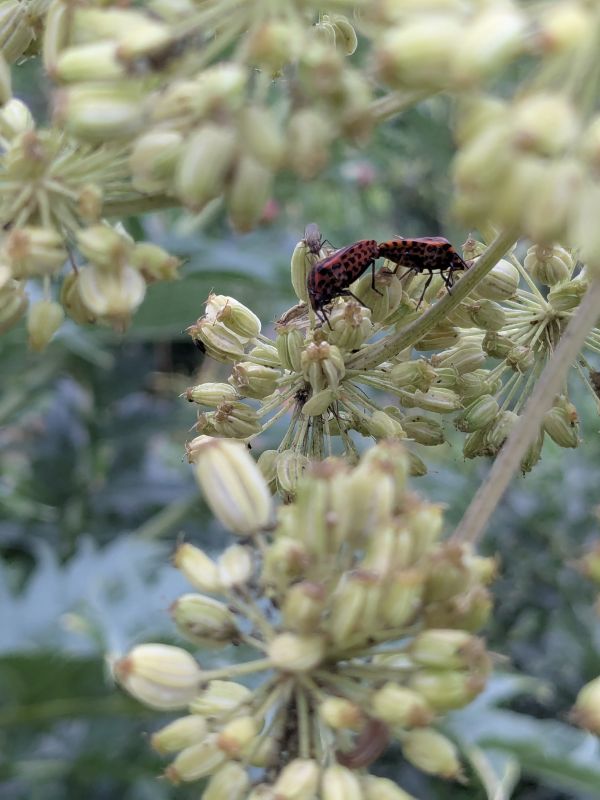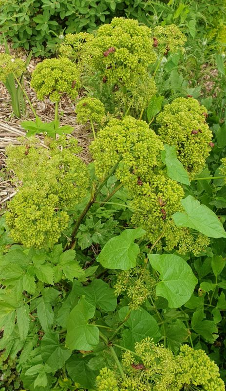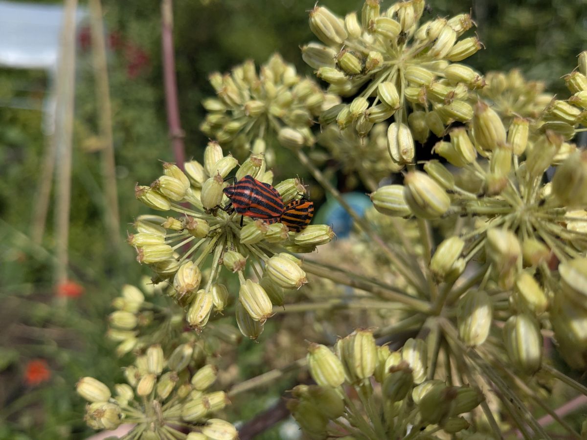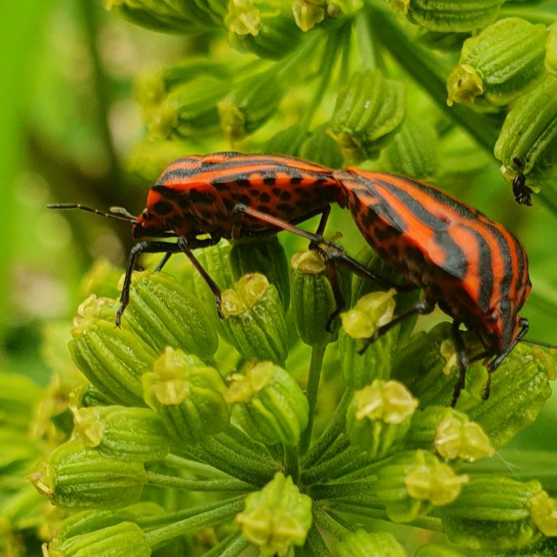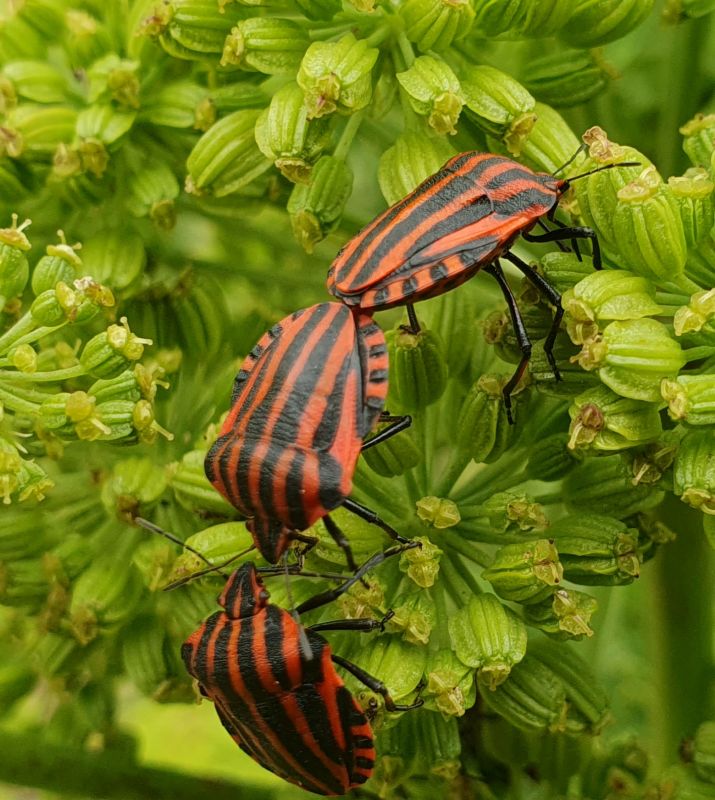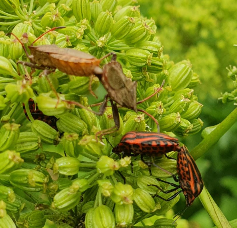 Geplaatst: 26 juni 202526 Jun Auteur @Petrasmoestuin Zie de vorige pagina. Een maand ofzo geleden was er een pyamaparty op de Engelwortel van de buuv. Echt tientallen Pyamaschildwantsen hadden zich op deze plant verzameld. Vraag me altijd af hoe ze van elkaar weten dat dat het meetingpoint is.