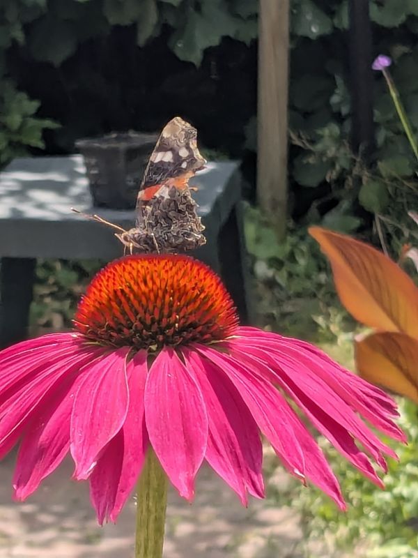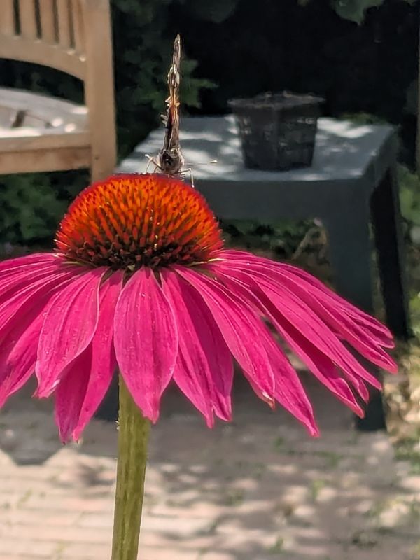 Geplaatst: 4 juli 20254 Jul Genieten van de prachtige Echinacea, en van de hommels en vlinders die erop landen. Zojuist een Atalanta met al flink wat vlieguren.