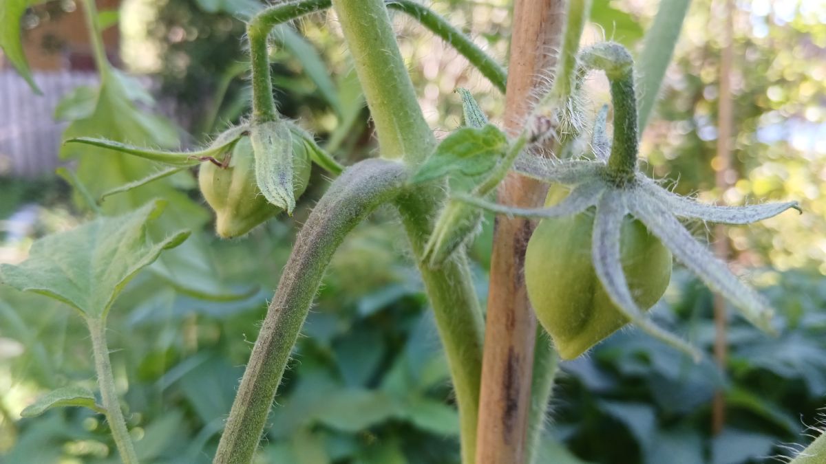 Idem. De variant die hier te boek gaat als Black Krim (wie weet nog wat de 'echte' zijn...) heeft het ook al veelvuldig vertoond aan de ene plant waaraan de tomaten groeien.