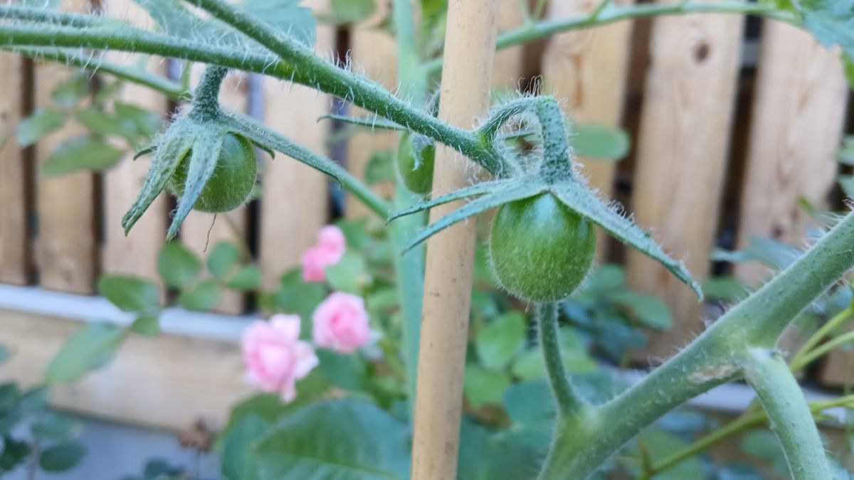 Mijn tomaat Rebel Alliance groeit wel héél bijzonder. Hij heeft zichzelf in twee takken gesplitst. De ene tak produceert tomaten zo groot als pingpongballen. De andere maakt cherrytomaatjes. Euh…