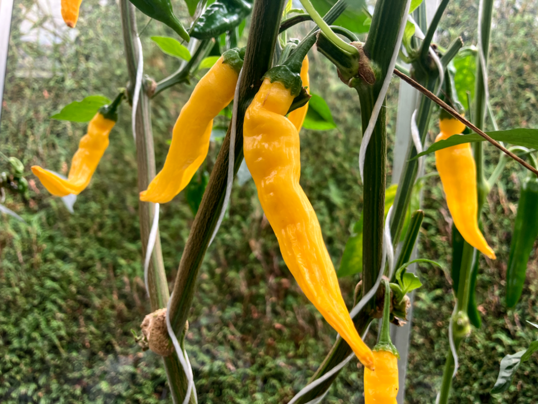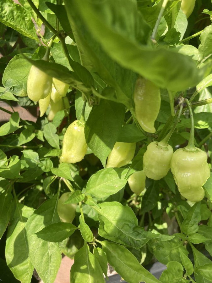 Cabaca Peach. Belooft een mooie oogst te worden. Deze zijn zo enorm aromatisch. Klein, maar heel fijn. Maar ook pittig. Je hebt er maar 1 of 2 nodig om een geweldige smaak én geur aan je gerecht toe te voegen. Erg blij mee!