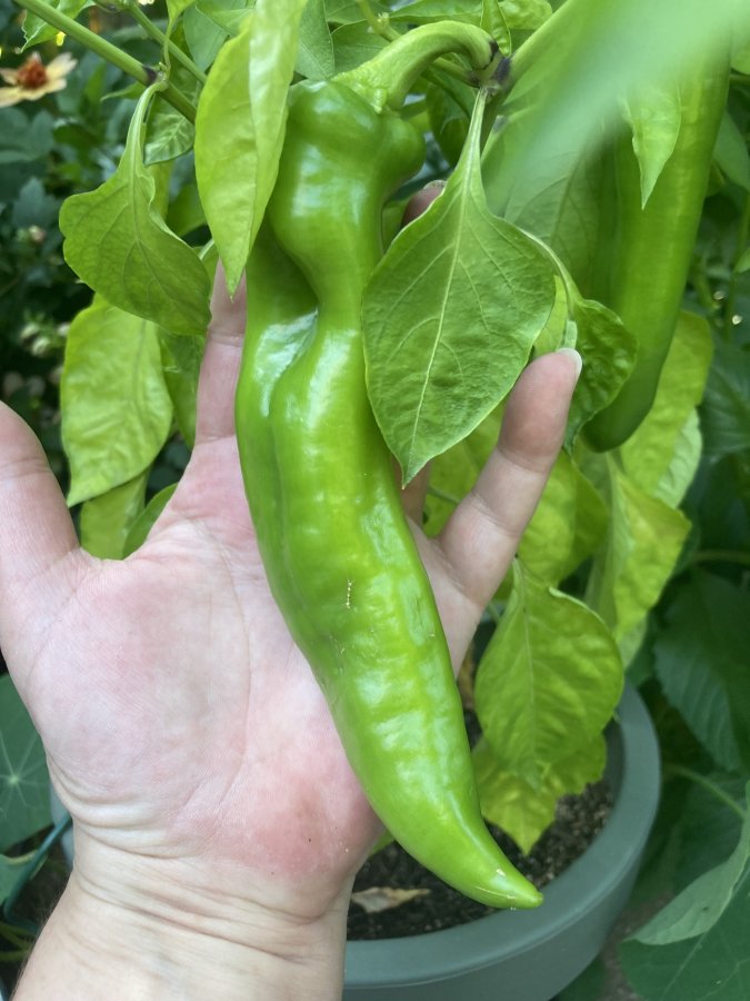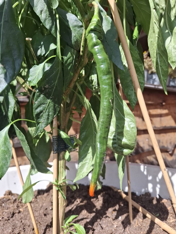Hier begint de eerste cayenne red eindelijk te kleuren. Nu weet ik renminste wel zeker dat ik het juiste zaadje had😁. Zijn flinke pepers bij van 23 cm.