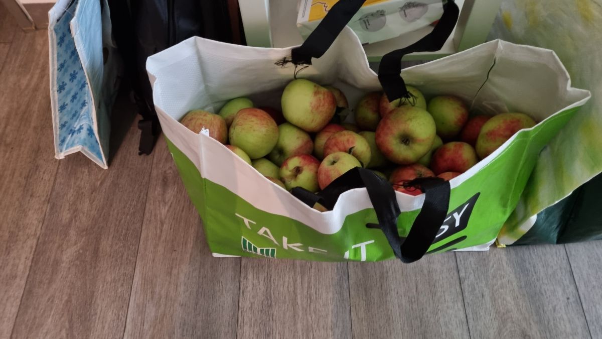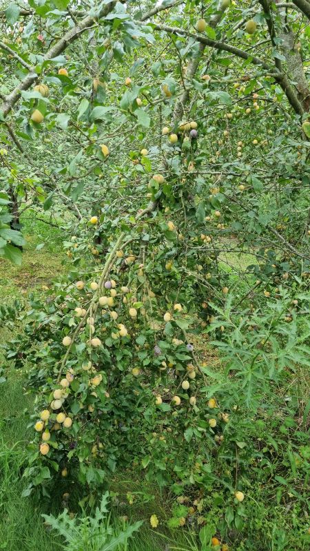 Vandaag ruim 13 kg appels, zo'n 1,5 kg blauwe pruimen (zwetschen) en 1,5 kg Mirabellen geplukt.