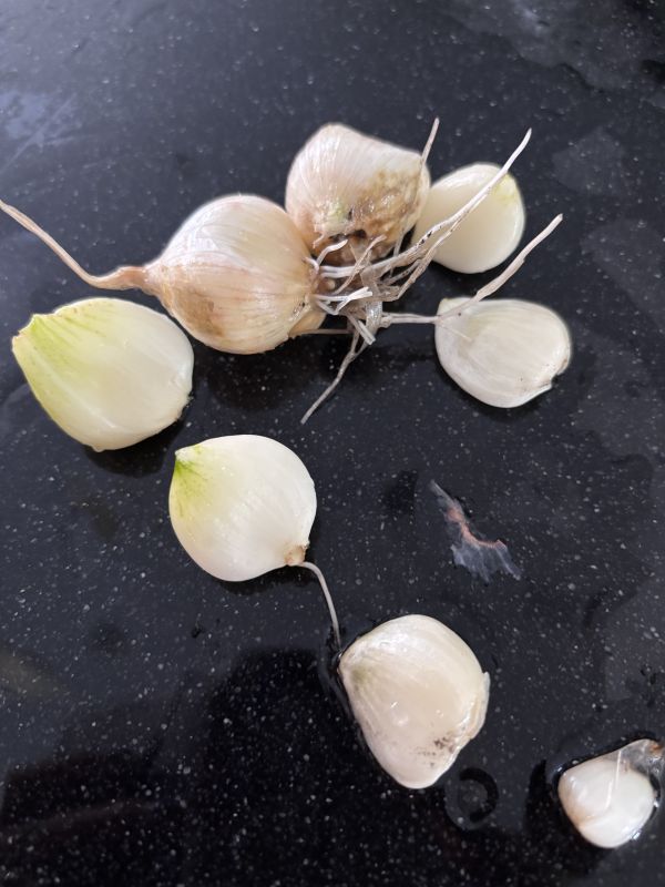 Tussen de aardbeien deze dingen gevonden. Smaakten heel lekker. Later nog meer opgegraven. Geen idee hoe ze tussen de aardbeien terecht zijn gekomen. Staan er al een paar jaar, wamt deze dingen heb ik alweer jaren terug voor het eerst gepoot.