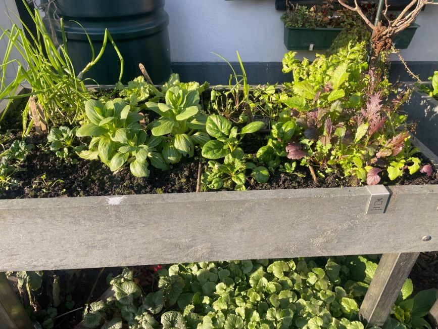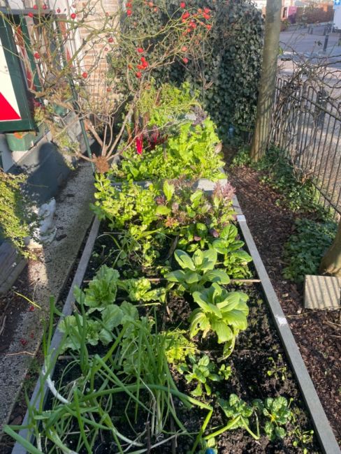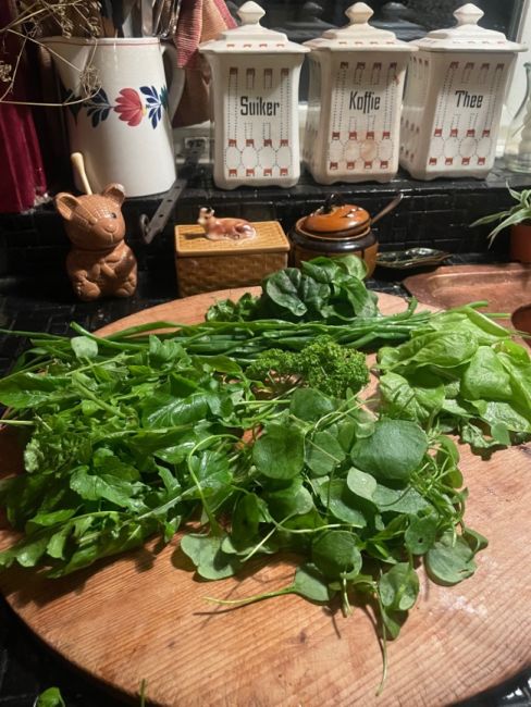 Geplaatst: 17 februari17 Feb Ik heb in het zonnetje vanmiddag mijn folie kappen van mijn voortuin bakken af gehad om te kunnen oogsten. Het onderste frame eraf gehaald zodat ik de staanders nu diep in de mix kan duwen waardoor het geheel lager word… ik er beter bij kan en weer zicht op mijn luikjes heb 😍 deel van de buitenste blaadjes van rucola, wintersla, spinazie, peterselie, winterpostelein en bosuitjes loof geoogst, gewassen, doorgeslingerd, en in koelkast bakjes gedaan. zo fijn dat de groei er weer in zit!👍😊🌱👩🍳🌱🐓🌱☃️🌱