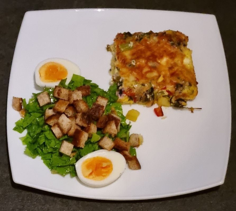 Vanavond de rest van de Frittata met Tatsoi gegeten en een Andijviesalade met walnoot, ei en kappertjes. Nu heb ik nog andijvie over, zoveel geoogst gisteren, morgen weer wat maken.