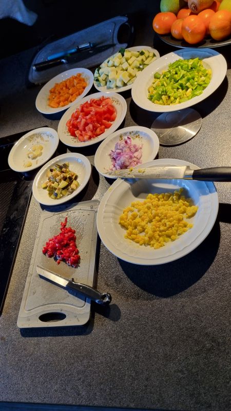 Gelukkig snijdt mijn man haast alles, dat scheelt mij tijd.