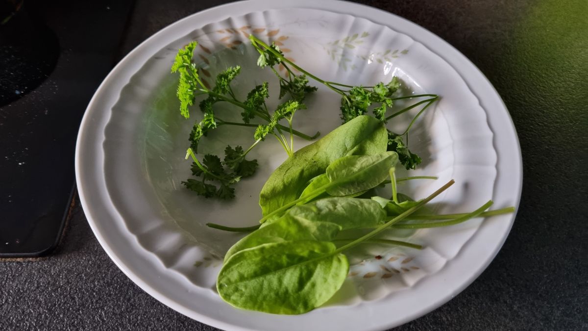 De spinazie die je koopt smaakt altijd een beetje naar staal, maar uit de tuin zo lekker.