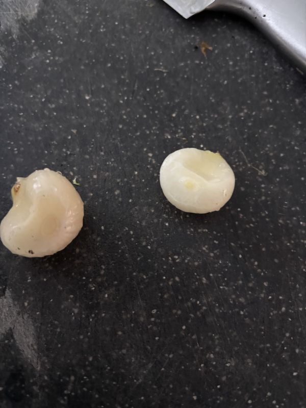Nee niet gemakkelijk, best wat werk geweest. Ik zal wat fotos op de Kornoelje pagina zetten. Ik heb 5 minuten een pureestamper gebruikt tijdens het koken. Daarna gezeefd en pitje voor pitje eruit gevist, soms nog wat vruchtvlees eraan en dat met een vork eraf gepulkt.