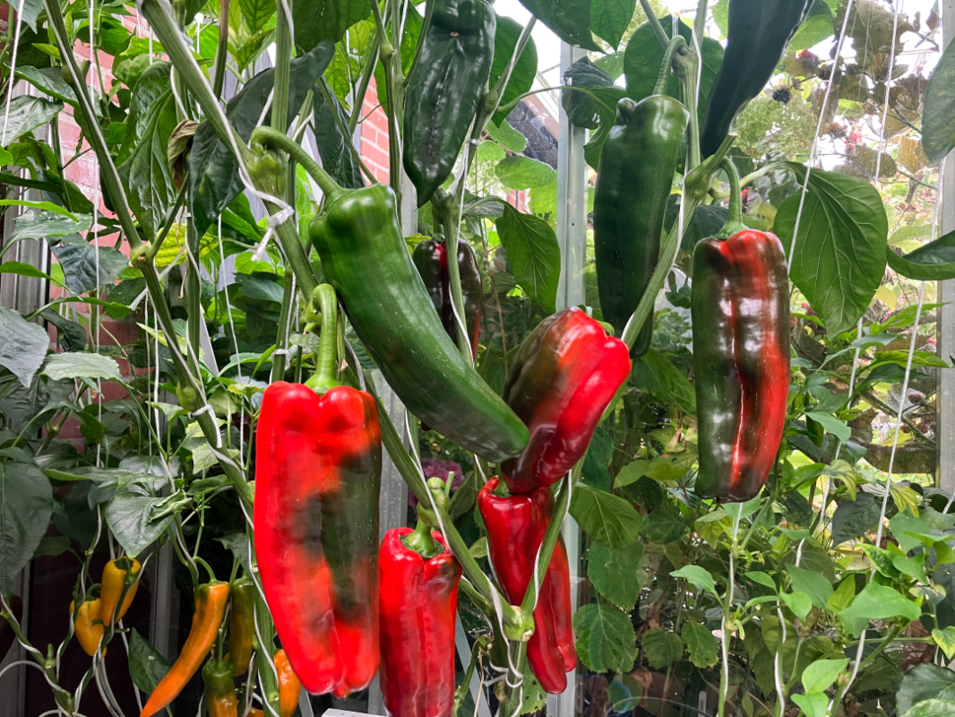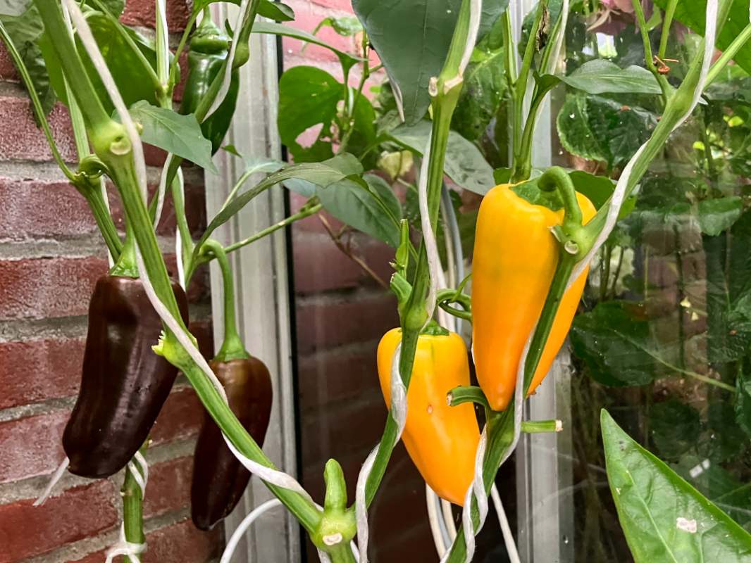 De puntpaprika's van Gitta wel, maar worden nog niet rood.