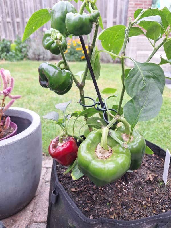Mijn buiten paprika’s (palermo’s) zijn ook nog niet rood hoor @Petrasmoestuin die hebben een groeistilstand opgelopen tijdens de hitte golf in Juni…🤔🌱👩‍🍳🌱🐓🌱🌻🌱