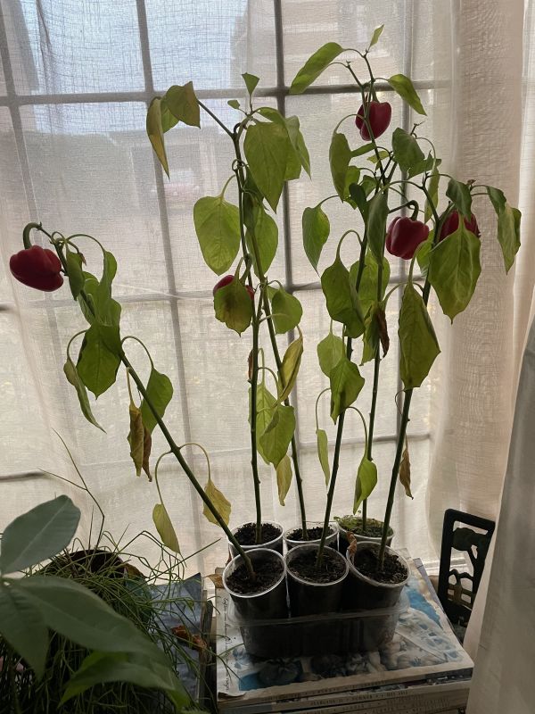 Ze leunen tegen het raam @Dahli mijn “keus peperplantje liet ik in mijn kasje staan in hun zaaipotjes.. die kregen water mee met de tomaten en hebben nu schattige ieni mini pepertje die ook zowaar rood worden!!!