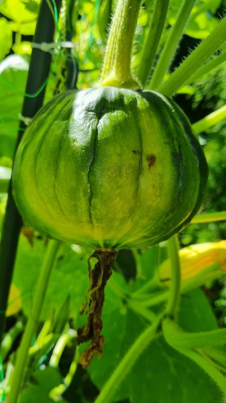 Golden Nugget valt me ietsje tegen. Ik heb inmiddels 5 pompoentjes op (wel fijn) compacte planten, maar daar had ik net wat meer van verwacht. Gaat absoluut wel in de herkansing, want kan dit jaar ook wel aan de droogte liggen ofzo.