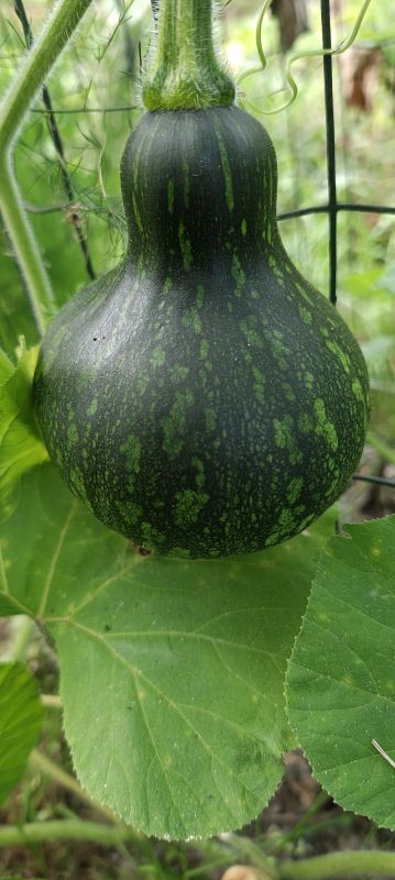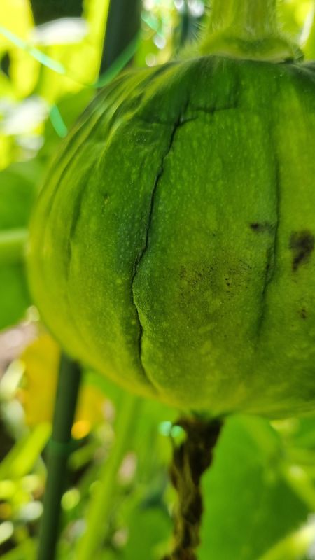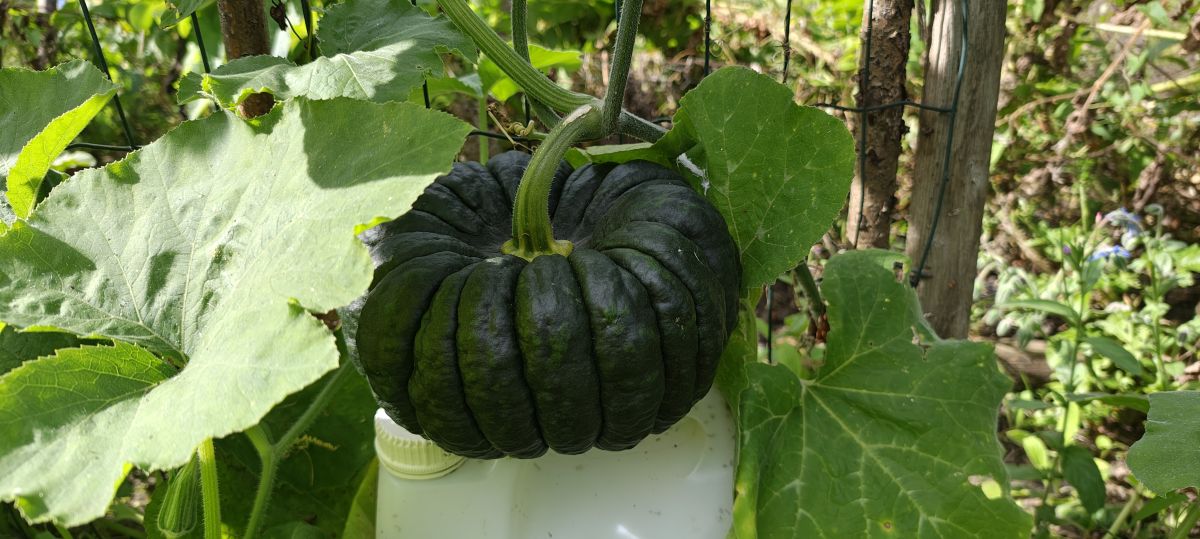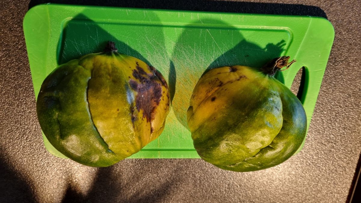 De blije mannen (Chirimen, klinkt als cheery men, dus blije mannen) heeft inmiddels 4 pompoenen die wel afrijpen voor de eerste vorst en de Guatamalan Green Ayote ook drie.