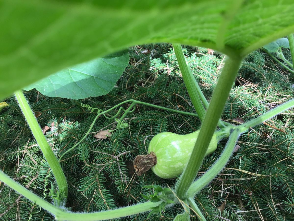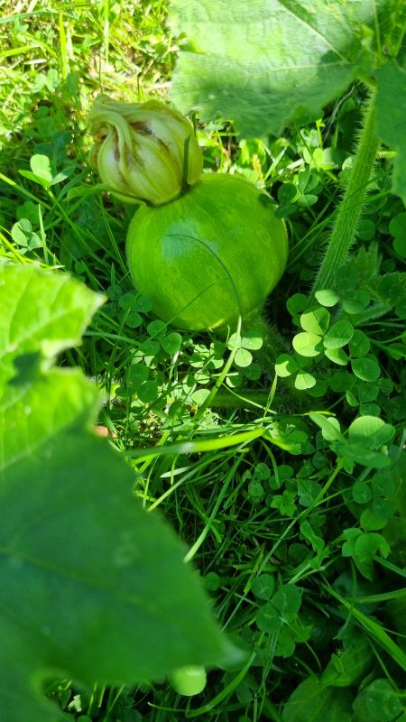 Ik heb denk ik ook een verkeerde/zieke pompoen. Het is een muscaat en die groeide als eerste.
