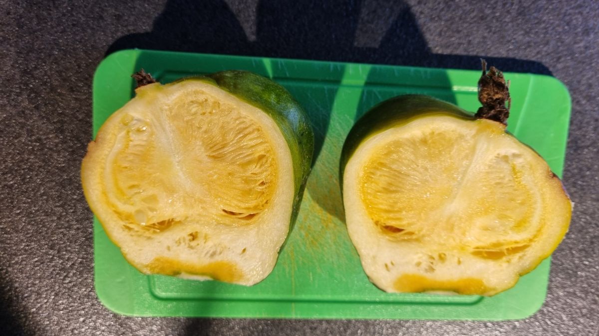 @Dahli Zo zag hij van binnen eruit. Nog heel onrijp. Ik had hem expres 2 dagen laten liggen, hij werd alleen maar slechter ervan.