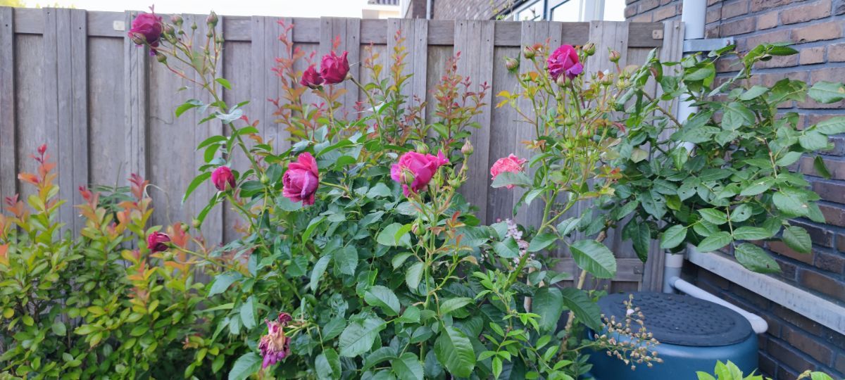 Geplaatst: 13 juni 20241 j Dat gaat nog mooi worden. Waarschijnlijk 'Soul'. Aan de rechterkant nog 'Auguste Louise', maar die is al uitgebloeid. Nog nooit zo'n volle tros bij deze roos gezien. Deze (en de Auguste Louise) zijn geënt op een mini roos met kleine bloemetjes (zaailing van rozen die de gemeente in het plantsoen geplant heeft, rechtsonder reeds uitgebloeid en midden achter nog in bloei). Oculaties van 3 jaar geleden, nu derde groei jaar. De moederplant van Soul is reeds overleden, de Auguste Louise moeder op stam staat er na 7 jaar ook niet meer florissant bij. Mijn Instagram: https://www.instagram.com/pronksparadise/