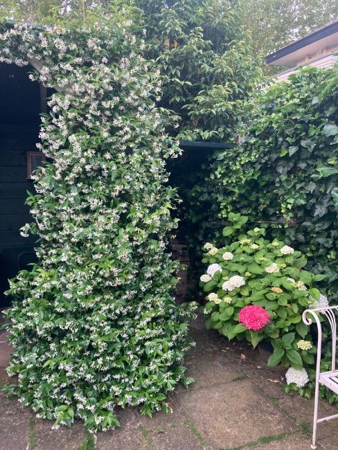 Geplaatst: 5 juni 20241 j De Toscaanse jasmijn gaat de goede kant op. Nu al ruik je de heerlijke zwoele lucht als we buiten in het ‘hutje’ zitten, en er moeten nog honderden bloemetjes uitkomen 😃.