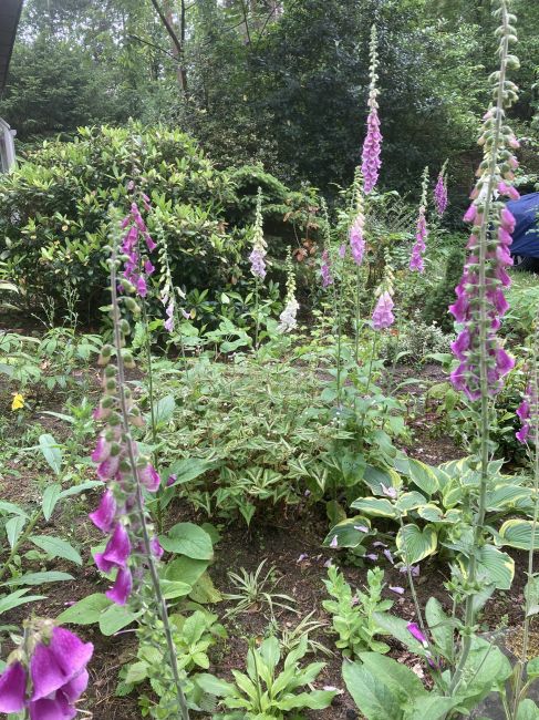 Geplaatst: 11 juni 202511 Jun De digitalissen in de voortuin zijn net over hun hoogtepunt heen, vanaf nu gaat het bergafwaarts met de mooie aren niet in de laatste plaats door de vele luizen dit jaar. Midden tussen hetvingerhoedskruid heb ik ook een mooie Persicaria microcephala 'Purple Fantasy' staan, die bloeit nu ook, de bloemen zijn klein. Je ziet de plant eigenlijk niet zo goed, morgen zal ik een betere foto maken. 11 juni 202511 Jun aangepast door appelvrouw We zijn allemaal kinderen van de Aarde 🌎