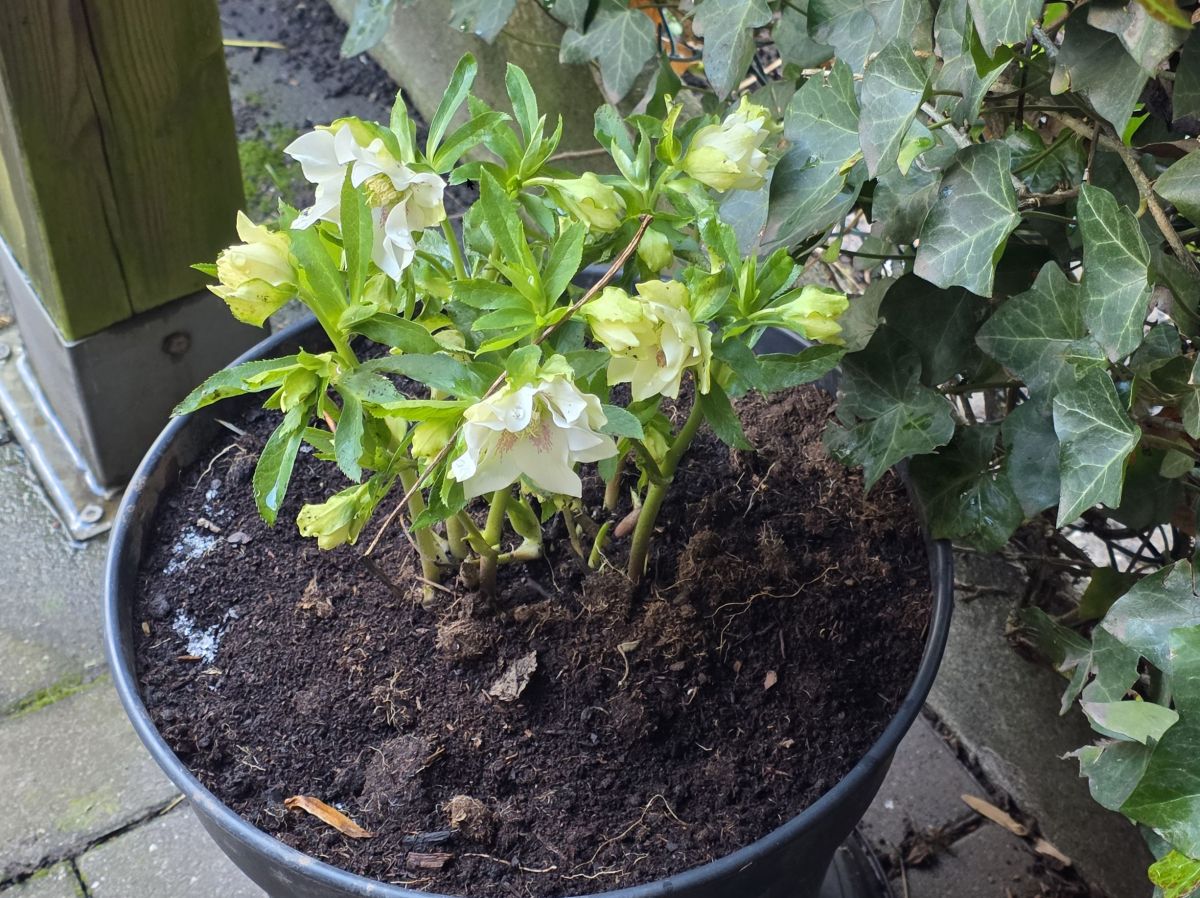 Geplaatst: 25 februari25 Feb Ik had een Helliborus in pot die zielig stond te zijn…😬Bij nader onderzoek bleken alle wortels weggegeten en stond de plant feitelijk los op de aarde..😞Zo jammer want was net een mooi soort…Heb ik de plant (einde herfst was dat) in emmertje met bodempje water gezet onder mijn afdak…ik verwachte er eingenlijk niks van…. Maar hé kijk nu!!!🎉Die ga ik maar snel een “ in the picture” plek geven 👍😍🌱👩🍳🌱🐓🌱☃️🌱