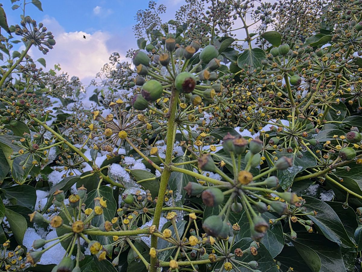 Geplaatst: 4 januari4 Jan De Winterkamperfoelie heeft nog steeds blad....kale takken laten de bloempjes beter uitkomen.De bloei van de Sneeuwbal heeft wat te lijden gehad onder de vrieskou,maar die herpakt zich meestal wel.2 van m'n Helleborussen komen al openEn bij de klimop beginnen de bessen stilaan te rijpen,dus binnenkort weer meer gevleugelde vriendjes in de tuin.Voor de meeste insecten is het momenteel te koud.