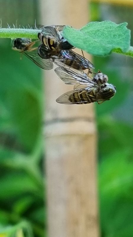 Geplaatst: 30 juni30 Jun Auteur In dezelfde plant zie ik ook dit. 4 kleine wespjes bij elkaar. Zo ziet het eruit. Wat is dit?Het is een snorzweefvlieg. 4 stuks lees ik nu op mijn app. 30 juni30 Jun aangepast door Petrasmoestuin