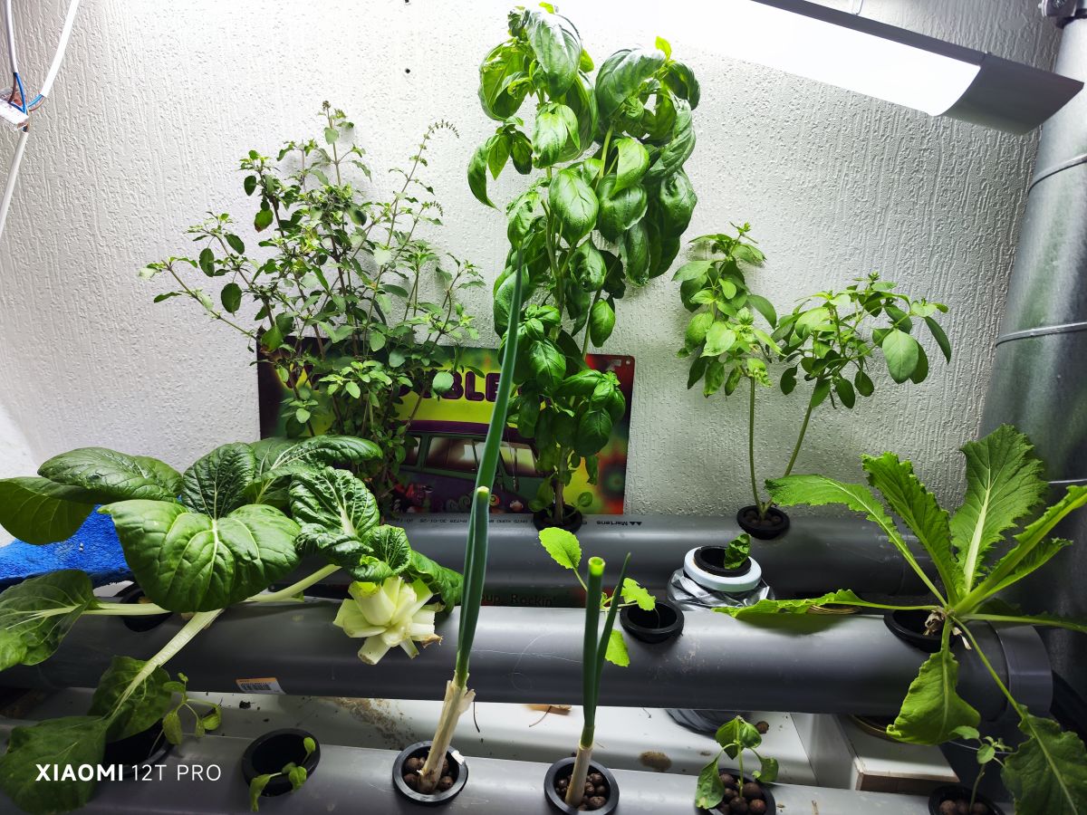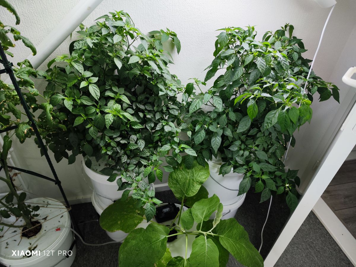 Geplaatst: 30 juli30 Jul Chinese kool in zwarte kratky bakken.Groeit hard alleen niet compact.Wel al 2x geoogst en opnieuw vanuit de zelfde plant laten groeien.Cherry Tomaten DWC was een beetje te groot geworden nadat ik terug kwam van vakantie. Wat ingekort en gesnoeid (hoop dat ik wat meer tomaatjes krijg)Ook de emmer moet ik wekelijks bij vullen gaat vrij hard met 15l vloeistof.Nft staan basilicum , paksoi, jonge chinese kool die hierna naar kratky gaan.Basilicum doet het goed.Paksoi meerdere malen bladeren geoogst.1dwc en 1kratky rawit chili plant in witte emmers.Plant groeit goed maar nog weinig chilis geoogst van de kratky variant.Dwc al redelijk wat chili geoogst.Kratky thaise egg plant.Eerste bloemen zijn door gekomen.Nog niks geoogstBuiten heb ik ook nog 2 cherry tomaten planten staan hier vrij weinig opbrengst tot nu toe.1 plant moeten verplaatsen ivm zon schade.