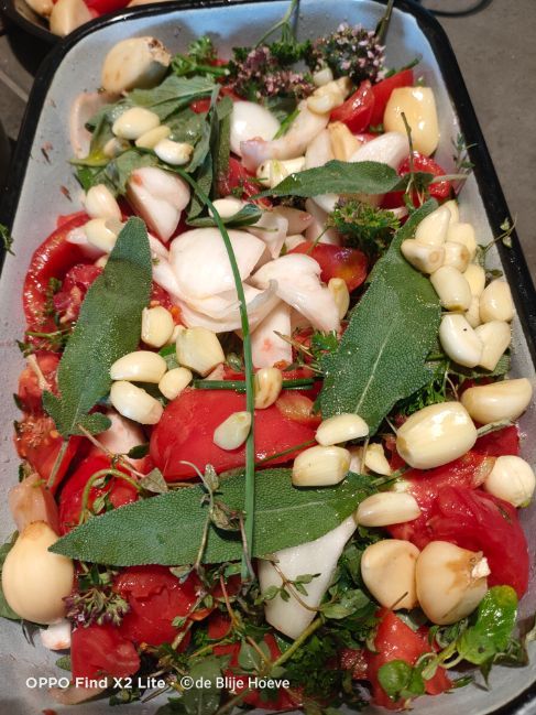 Geplaatst: 13 september 20223 j Auteur Ja, hier was het ook weer tijd voor deze methode. Braadslee volgeladen en in de oven gezet. Een uur later rook het verrukkelijk in huis en was het klaar. Rozemarijn en tijm takken eruit gevist, sjalot en knoflook geplet en toen geroerd. Ga het niet fijnmalen, vind dit lekkerder. Verschil met vorige (zeer oude seventies) oven is dat de verdamping een stuk sneller gaat. Dit gasfornuis heeft dus een hete lucht oven (en grill). Maar vandaag moet het snel in potjes anders is de saus straks op.