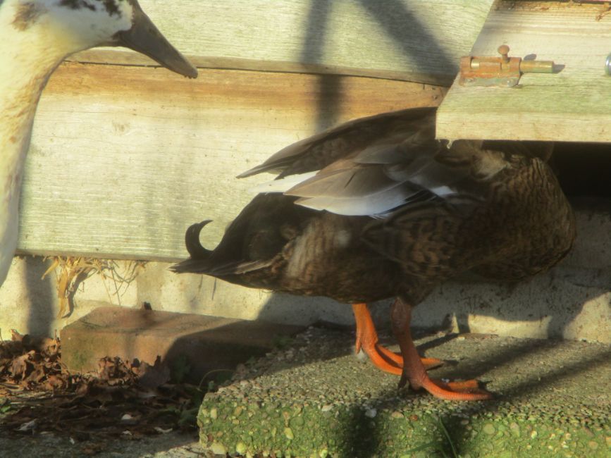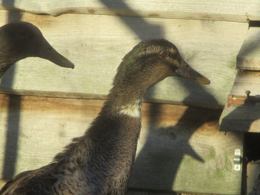 Geplaatst: 9 januari 20241 j 1 van onze oudere eenden, de meest donkerbruine uit het filmpje van mijn vorige bericht, lijkt uhm... een woerd te worden? Het viel me een tijd terug al op dat ze zo'n krul kreeg in haar staart. In dat filmpje zie je dat ook wel een beetje. Maar vanmiddag zag ik ineens dat haar kop zo groenig wordt, zo als van een wilde eend. En ook bij haar staart glanst het groen. Nou zijn loopeend-woerden er in allerlei kleuren, die hebben geen groene koppen ofzo. Maar toch. Apart? Ik zal morgen eens proberen of ik er een foto van kan maken. Giga-gaas.nl facebook.com/Veldvarkens