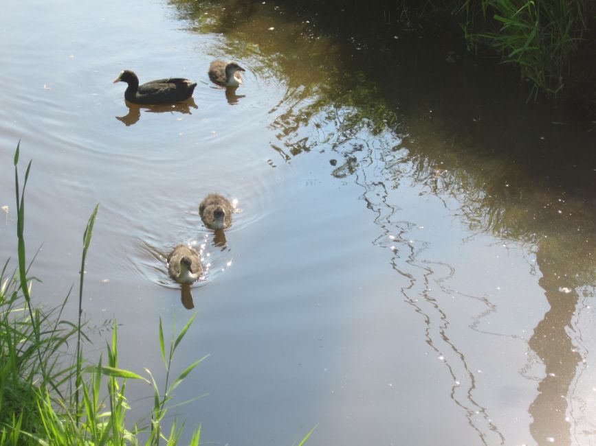 Geplaatst: 25 juni 20241 j Het gezinnetje meerkoeten kwetterde weer levendig vandaag in de sloot. De raarste vogel in de sloot is overigens de man in het waadpak die eens per jaar de sloot komt inspecteren ''uit naam van het waterschap''. Volgens mij is ie ontsnapt uit een Jiskefet scene.