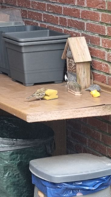 Geplaatst: 16 maart 202516 Ma Dat is een dames vink en dus een zij😉gelukkig weer weg gevlogen. Vaak komen de tegen het raam gevlogen vogels weer bij na een tijdje zeer amechtig onder het raam te zitten, bekje open. Zon beestje heeft dan flinke hoofdpijn. Wij hadden opeenvolgend 4 roodborstjes 3 grote bonte spechten en 3 appelvinken in de tuin. De roodborstje waren duidelijk 3 mannetjes waarvan eentje een beetje een soort paradijsvogelshow gaf, bek omhoog gestrekt naar de lucht en staart ook en borst naar voren. Het vrouwtje bekeek het wel met interesse, de andere twee heren ook denk ik, die kregen les. 16 maart 202516 Ma aangepast door appelvrouw We zijn allemaal kinderen van de Aarde 🌎