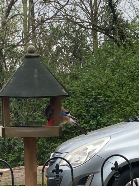 Geplaatst: 10 april 202510 Apr Hier zien we het afgelopen half uur een gaai in de weer met wat pinda’s.